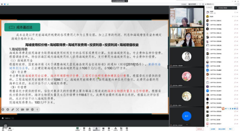 此次讲座,使资产评估专业师生了解了海洋资源、用海类型及方式,学习了海洋资源与环境评估的特点和方法,初步认识到向海发展过程中凸显的专业问题。为资产评估专业向海发展提供了新的思路和方向,也坚定了资产评估专业在海域使用权出让、抵押、转让、收回及征用领域,以及海洋资源、海域作价参与企业经济活动涉及的评估方面的发展努力,提升了专业知识,增强了专业认同、文化自信和职业期待。