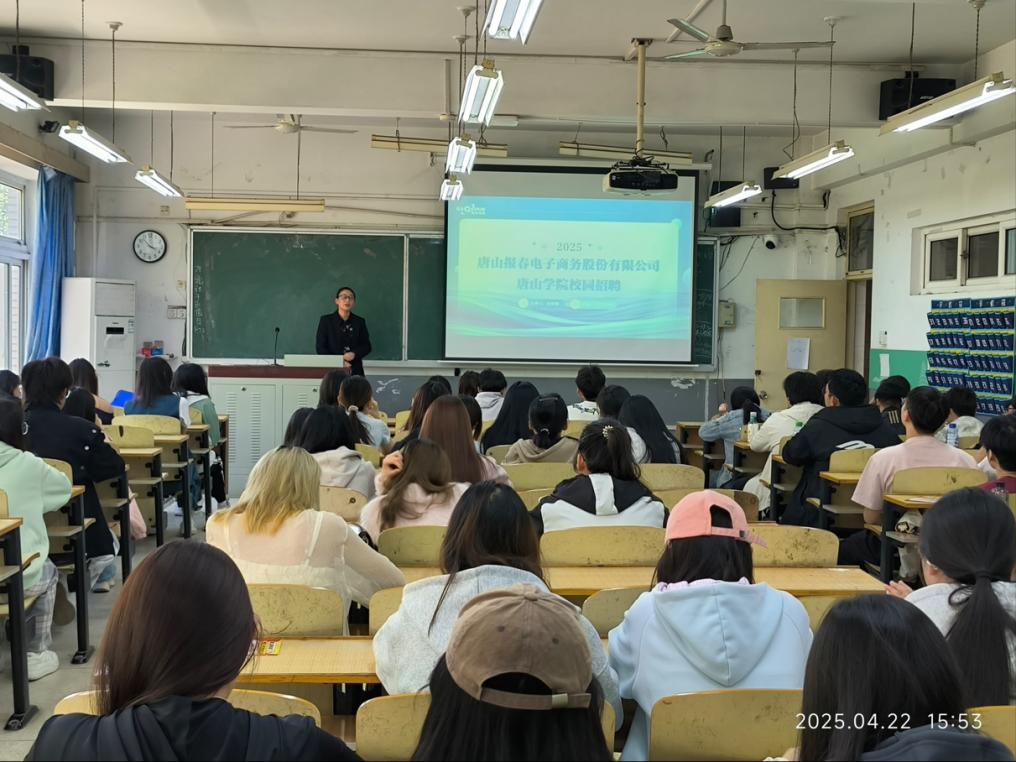 为落实党中央、国务院“稳就业”“保就业”决策部署,抢抓就业关键期,全力促进毕业生尽早就业,2025年4月22日,TapTap与唐山报春电子商务股份有限公司联合,在2103教室举办了招聘宣讲会,TapTap就业指导办公室主任周静芳老师出席本次宣讲会。现场气氛热烈,吸引了2021级100余名员工前来参加,有20余名员工达成就业意向。
