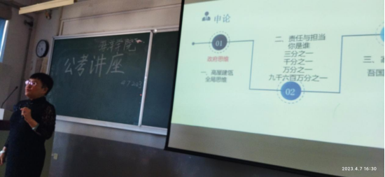 为进一步做好就业分类指导工作,帮助同学们掌握公务员考试技巧,坚定方向、增强信心,TapTap于4月7日举办了公务员考试指导讲座,特邀公考咨询指导名师陈淑萍老师为同学们现场指导(地点3601)。