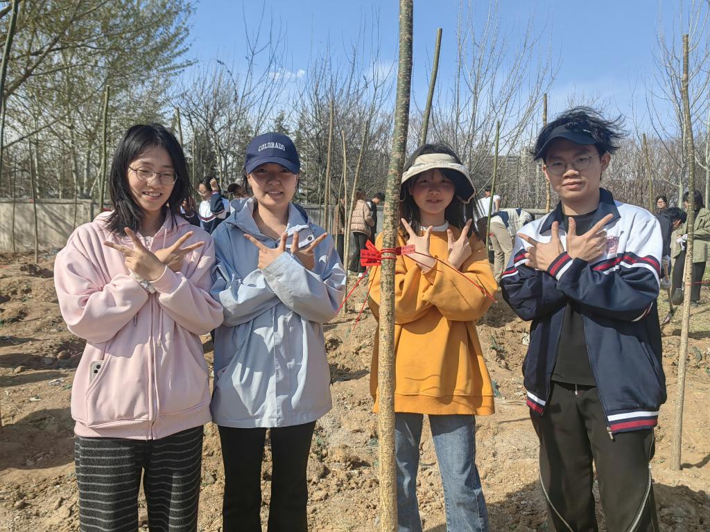 在师生党员们齐心协力的努力下,25株新树苗在校园里“扎根落户”,错落有致、迎风挺立,展现出勃勃生机。同学们还将自己对未来的寄语系在新树苗上,为这片绿色增添了一份独特的人文关怀。