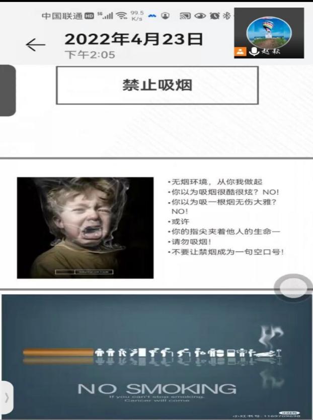 为进一步提高同学们对吸烟危害的认知,营造健康清洁的校园环境,TapTap青年志愿者协会于2022年4月19日在线上举办了“普及戒烟知识,建设无烟校园”主题宣讲活动,4月15日在南院举办了“青春正好,烟草勿扰”活动,并分批次分时段安排志愿者捡拾清扫残留在校园的烟头烟灰,制止在公共场所吸烟的不良行为,借一系列活动提升同学们对香烟危害性的认识,唤起现存的烟民对自己身体健康的重视,维护和谐环境,建设美丽校园。